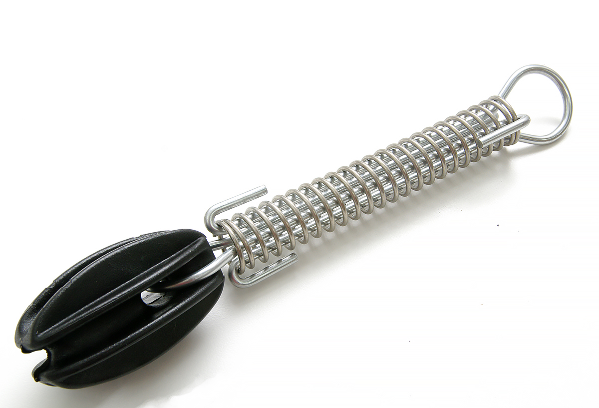 Mniejsza sprężyna amortyzująca z do ogrodzeń elektrycznych. Stosowana podczas tworzenia pastuchów dla bydła, koni i innych zwierząt hodowlanych. Sprężyna naciągowa wspomaga wytrzymałość całego ogrodzenia, chroniąc przewód (drut, linkę stalową, plecionkę lub taśmę) przed zerwaniem. Do amortyzatora dołączony jest izolator, co pozwala na montaż na słupku końcowym (po użyciu izolatora narożnego).