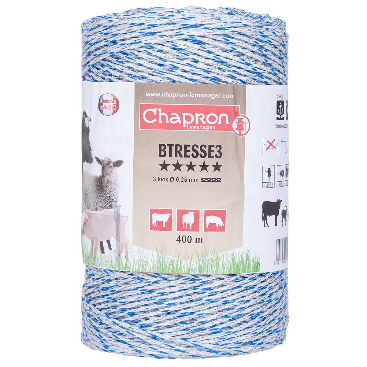 Plecionka w kolorze niebiesko-białym jest dobrze widoczna dla zwierząt i ludzi.Impuls elektryczny jest przekazywany przez 3 druty ze stali nierdzewnej wplecione w linkę. Oferowana plecionka do ogrodzeń elektrycznych ma niezwykle niską oporność rzędu 2,2 Ohm/m, dlatego może być wykorzystywana do budowy bardzo długich ogrodzeń. Do montażu linki plecionej wymagane jest użycie izolatorów.