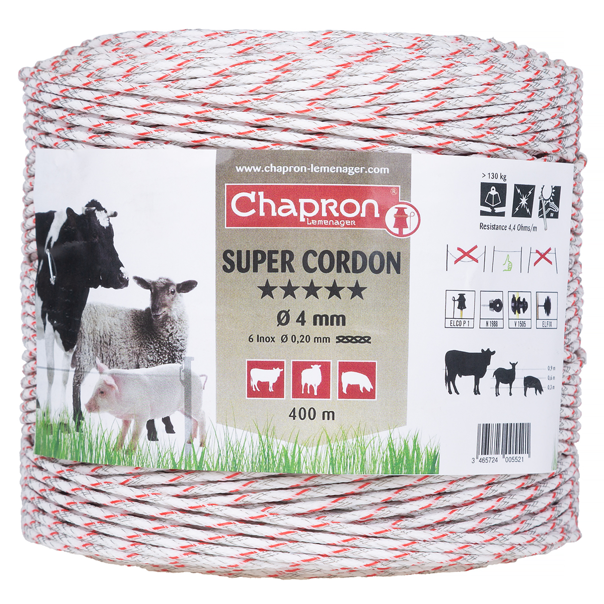 Bardzo mocna plecionka o najwyższej jakości i bardzo dużej wytrzymałości na zrywanie. Model SUPER CORDON firmy CHAPRON wykonany jest w najwyższej jakości. W grubą ø4 mm linkę polietylenową wykonaną z 18 nici polietylenowych odpornych na promieniowanie UV, aż 6 drucików ze stali nierdzewnej o grubości 0,2 mm każdy.