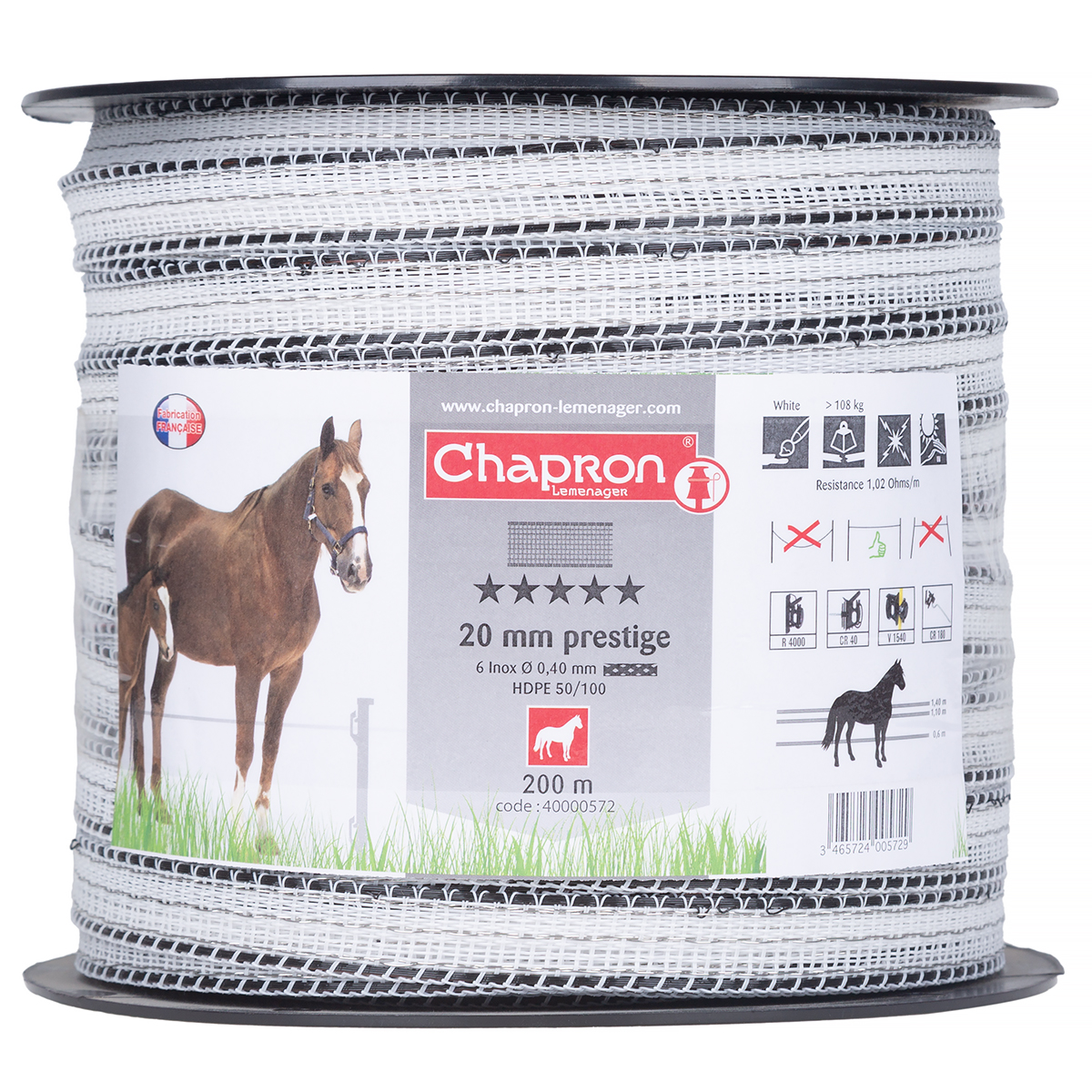 Taśma jest niezwykle przydatna przy bardzo długich ogrodzeniach prowadzonych w trudnych warunkach. Specjalny odcień koloru sprawia, iż taśma jest doskonale widzialna przez konie nawet w warunkach złej widoczności.